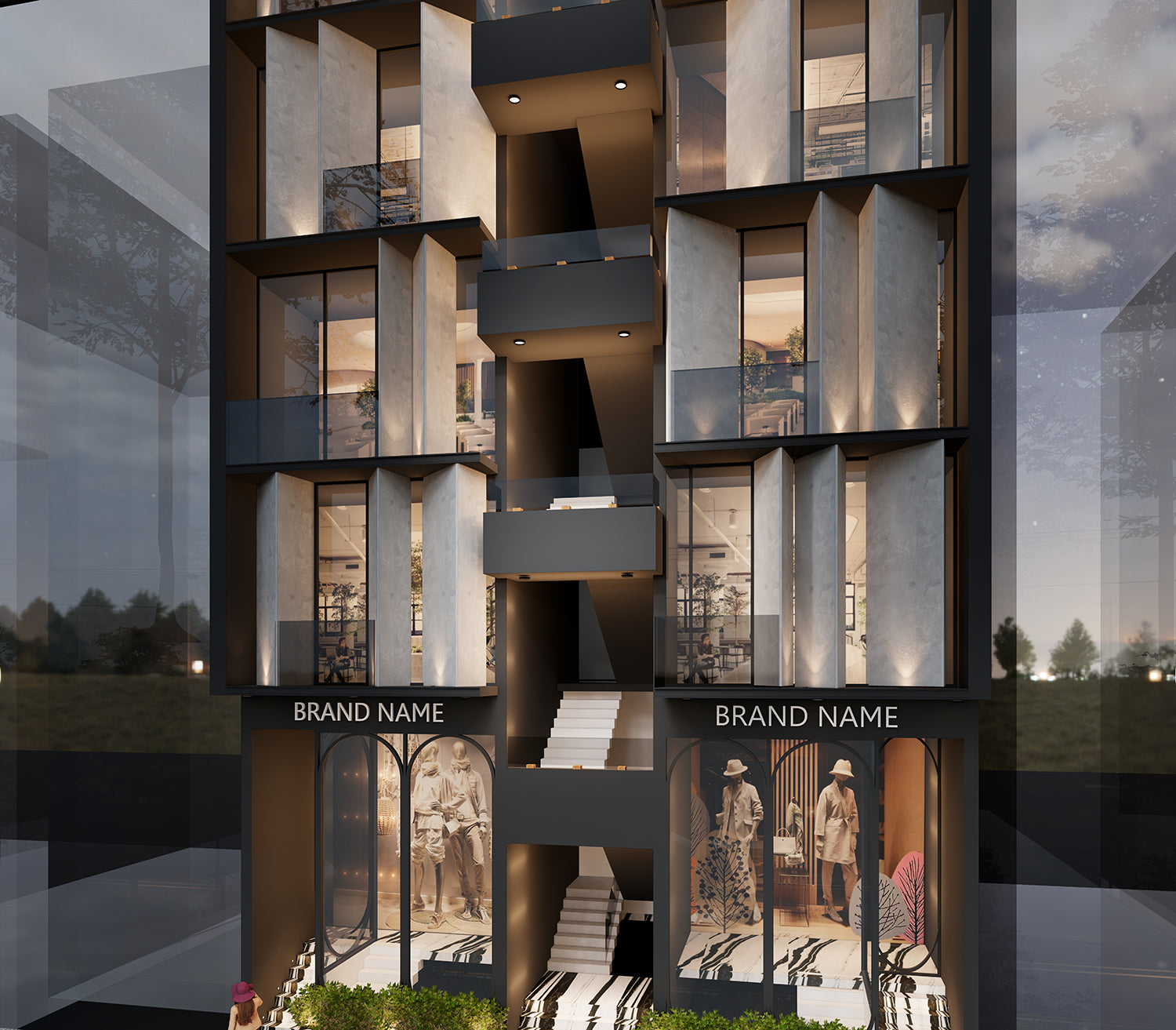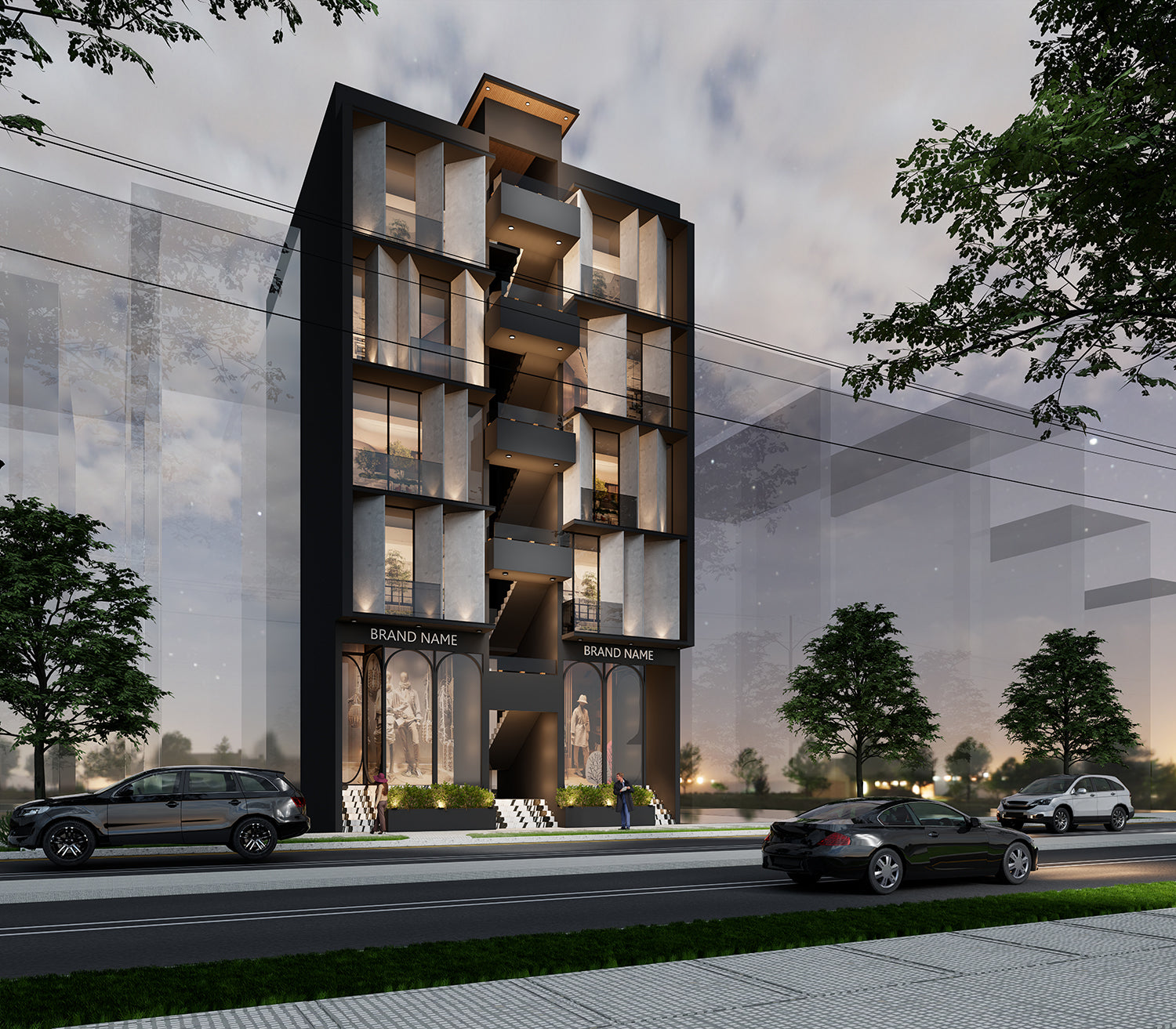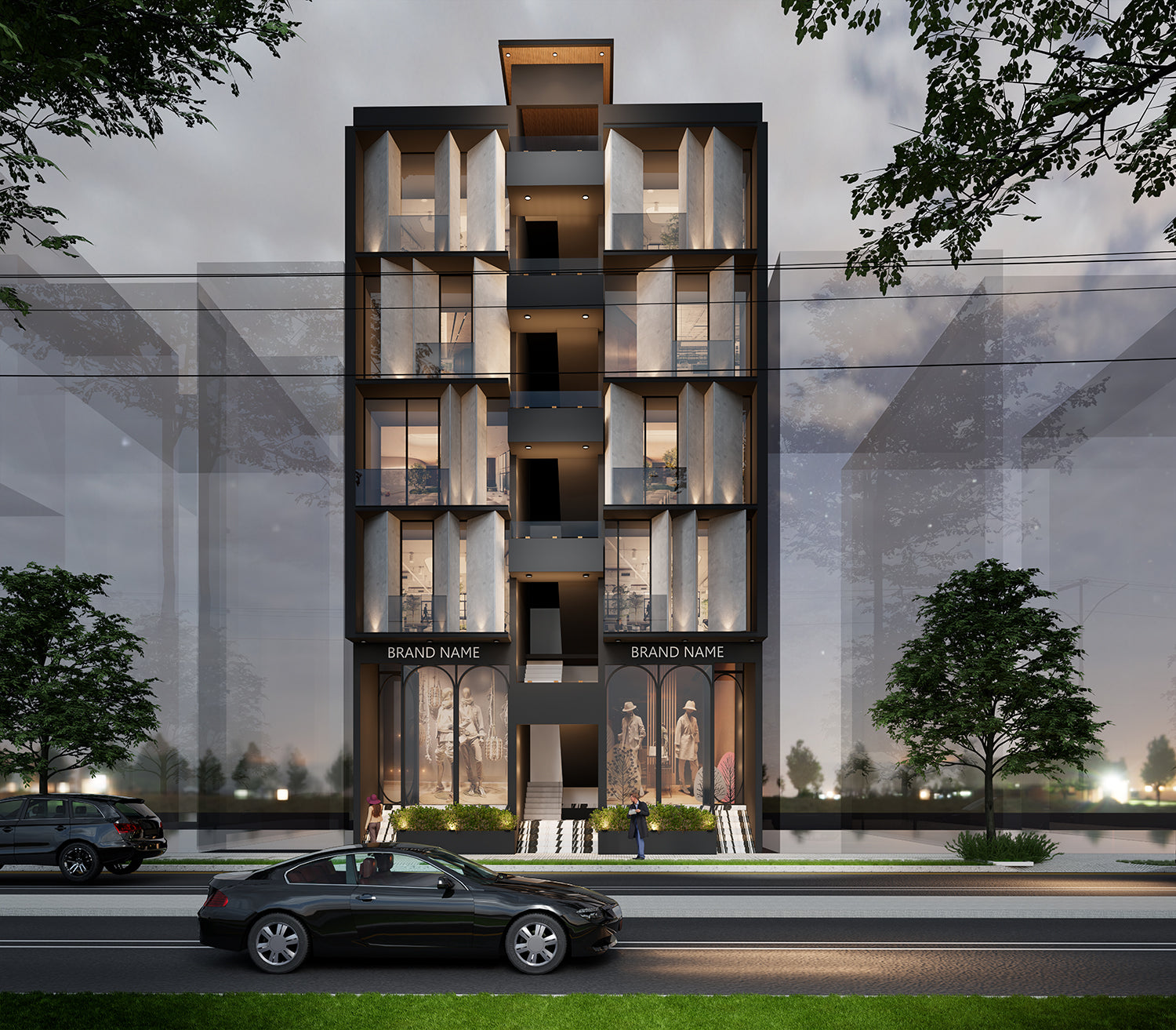 Black is a color with a very special presence in architecture differentiating it from the neighoring buildings, impossible to ignore the bold exterior and also tying it with a sense of sophistication, reflective surfaces and notable high end appearance. A cantilivered projection adding a dynamic quality to the color palette.
