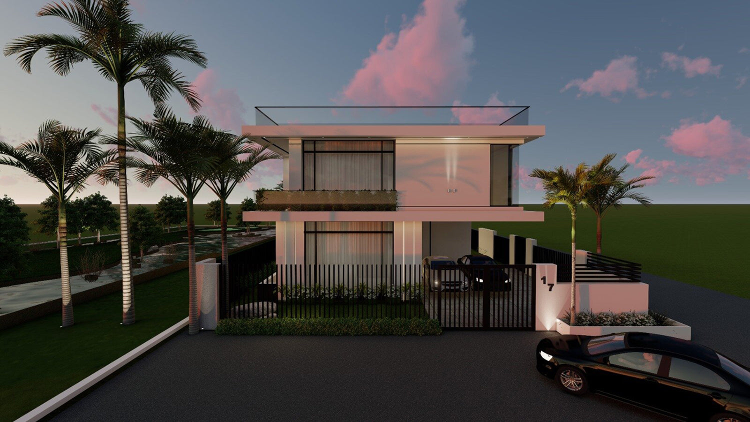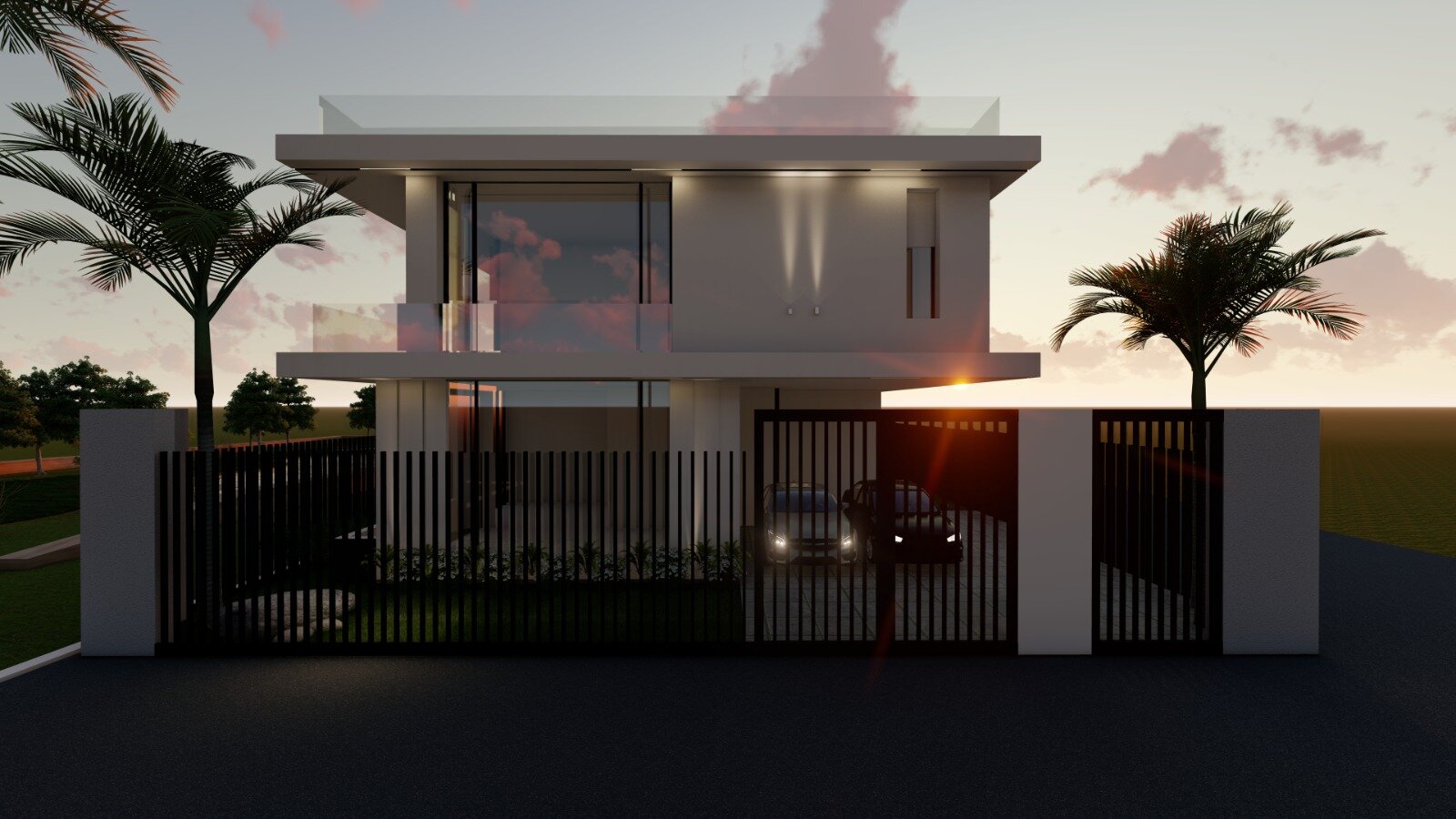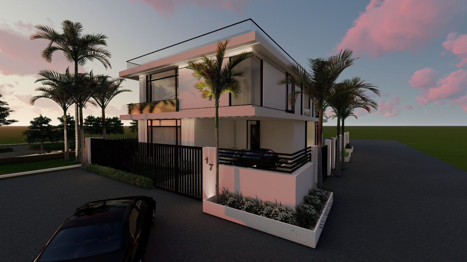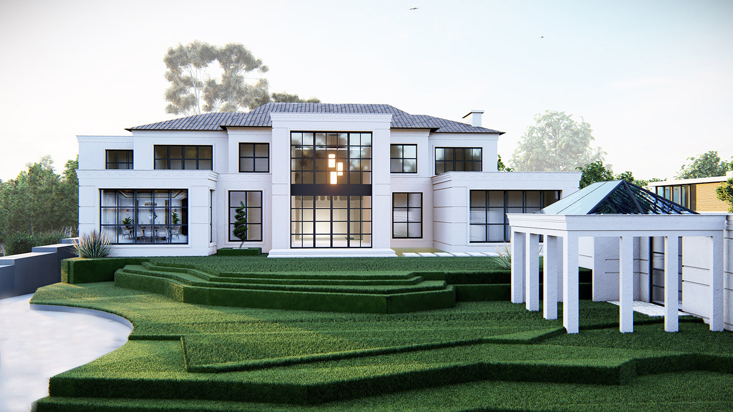 Modern architecture concept is built within the social artistic and cultural attitude known as Modernism with all white façade, fences and big glass windows facing the golf views embracing simplicitiy, minimalism and rejecting unnecessary ornamentation.
